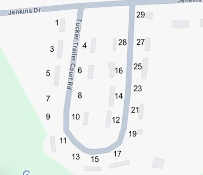 Tucker Court Lot rent starting at $350 per month Tucker Court Lot Map Available Lots Lot 29 Lot 28 Lot 16 Lot 19 Lot 21 Lot 12 Lot 23
